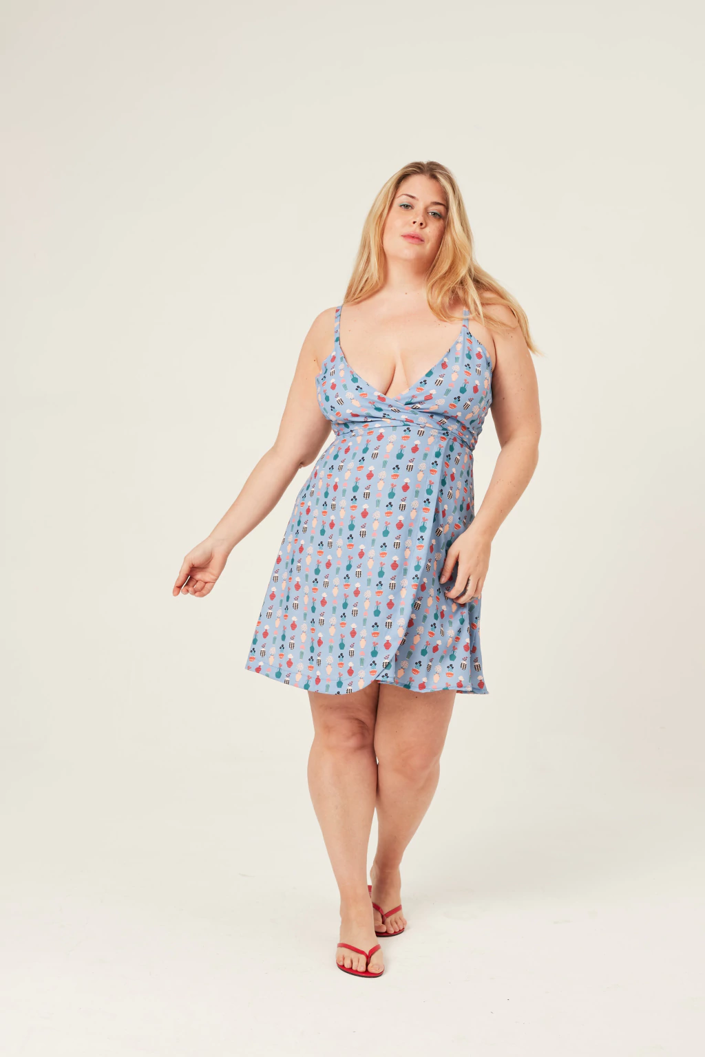 Vestido cruzado de Cey, con breteles regulables, y un lazo en la cintura para regularlo
